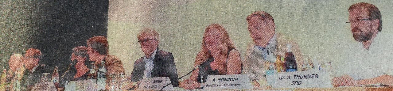 Alfred Honisch, Landtagskandidat der Grünen: "Eine absolute Mehrheit ist wohl eher illusorisch. Aber ein Regierungswechsel durch eine gemeinsame Koalition aus Grünen, SPD und Freien Wähler ist durchaus denkbar! Und diese neue Regierung müsse dem Demographische Wandel in der Gesellschaft mehr Bedeutung zugestehen. Also, im Familienministerium ein Amt für Demographie Landesentwicklung, Stadtplanung, Verkehrsplanung und Demografischer Wandel!"