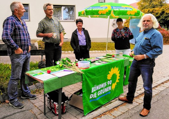 Gleich drei Kandidaten präsentierten sich anlässlich der Landtagswahl am 14. Oktober für zukünftig neue politische Ämter. Ludwig Hartmann als möglicher Spitzenkandidat der Bayerischen Grünen für den Landtag, Andreas Krahl (Bildmitte) als Kandidat des Landkreises für den Landtag und Dr. Eckart Stüber (Bild re.) für einen Sitz im ebenfalls neu zu wählenden Bezirkstag.