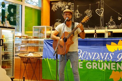 Ludwig Hartmann, Spitzenkandidat der Grünen für der Landtag, richtete dann noch ein paar Worte an die Zuhörer, seine wichtigsten Themen Landwirtschaft, Flächenfrass aber auch die proeuropäische Einstellung der Grünen. Die Bayern haben ein "Anpacker-Gen", wir könnten stolz sein auf unseren Wahlkampf,