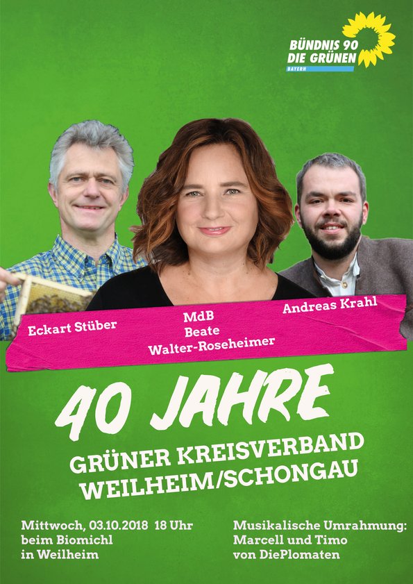 03.10.2018: 40-Jahr-Feier Die Grünen im Landkreis Weilheim-Schongau im Biomichl, 18.00 Uhr