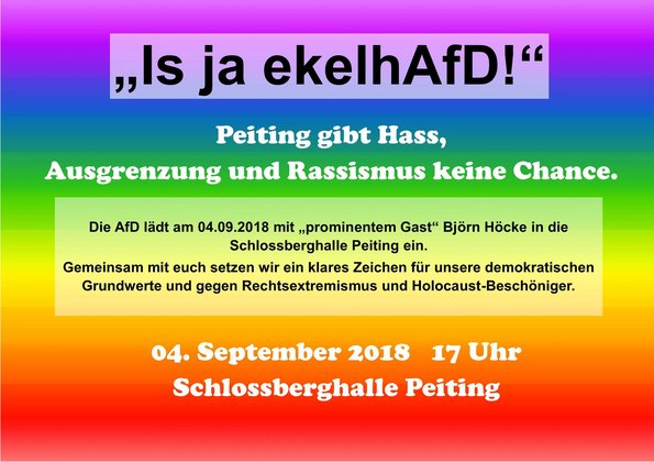 04.09.2018: Demo gegen die AfD in Peiting, Schloßberghalle 17.00 Uhr