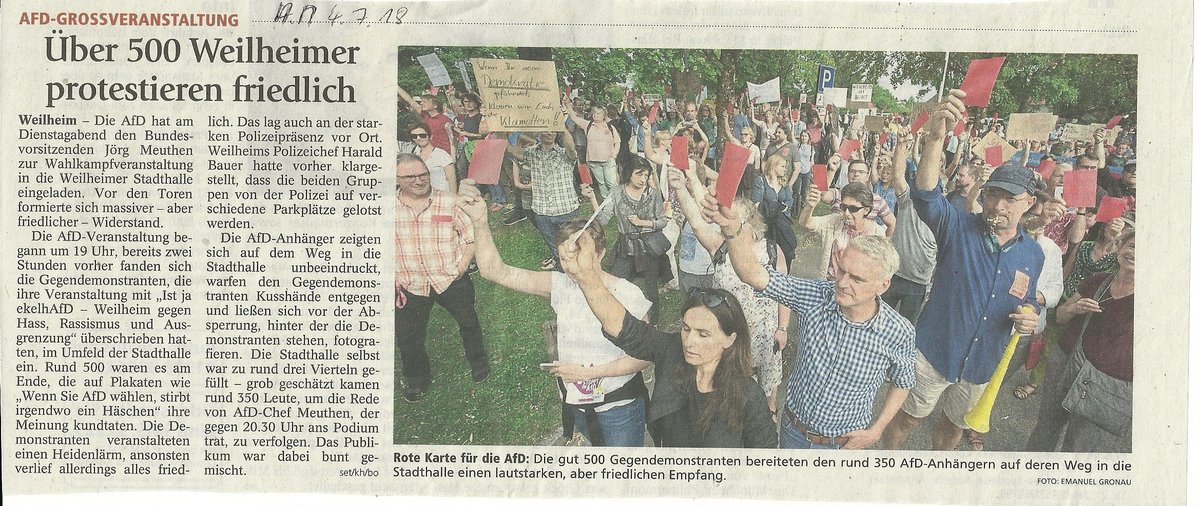 05.07.2018: Presseresonanz auf Anti-AfD-Demo in Weilheim
