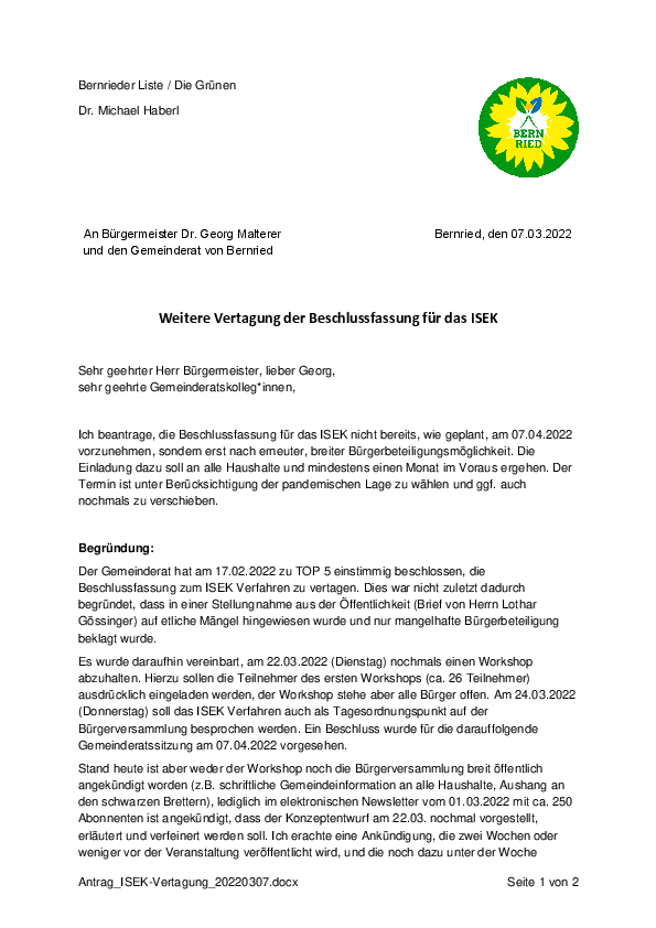 Bernried-Aktuell | Bernried-Antrag