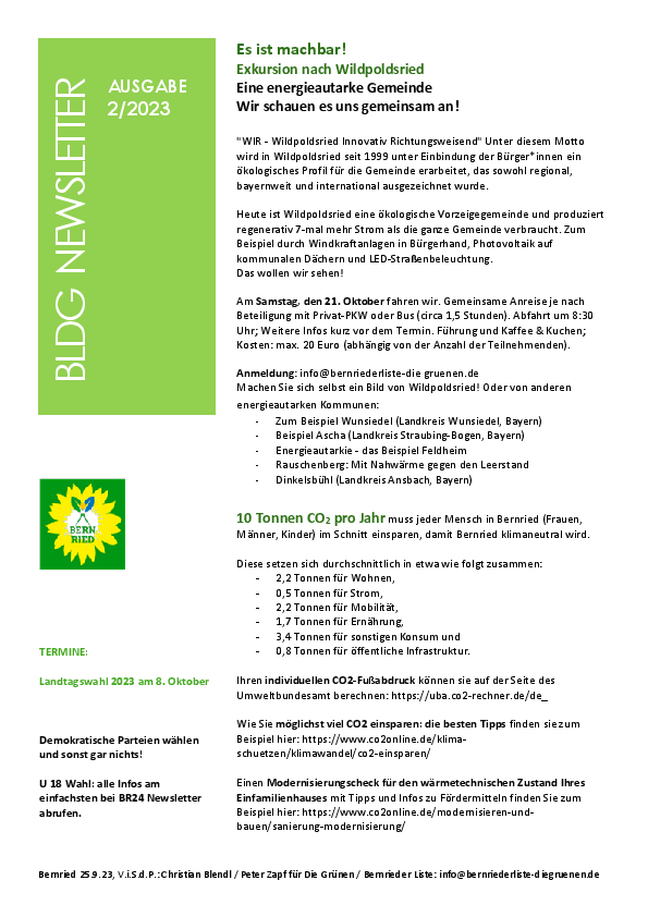 Themen: Unsere Exkursion nach Wildpoldsried, Energetische Sanierung, Geothermie in Bernried