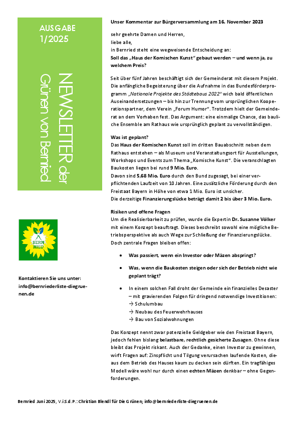 Ausgabe 01/2025 des Newsletters der Grünen Bernried