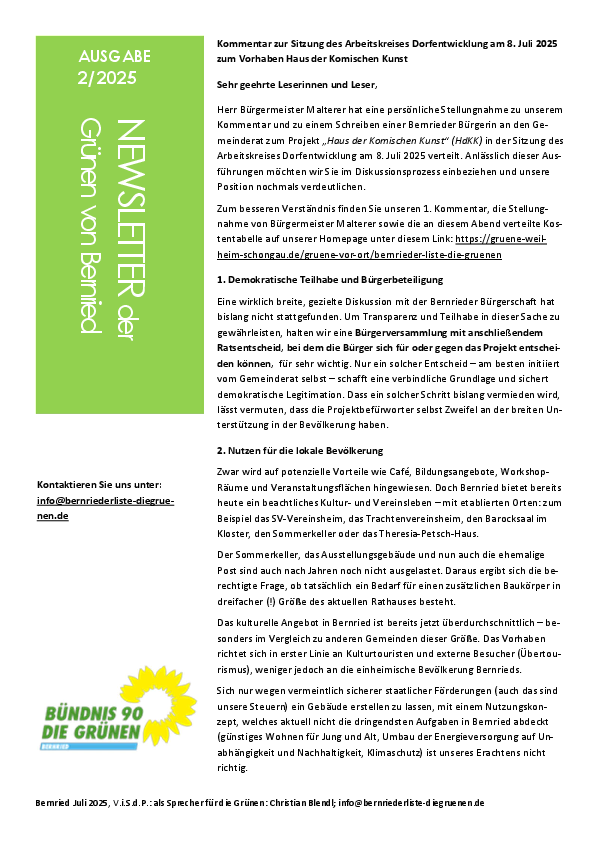 Ausgabe 02/2025 des Newsletters der Grünen Bernried