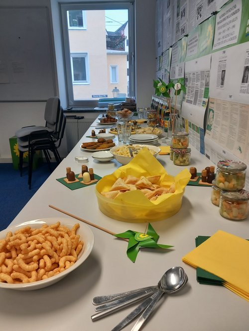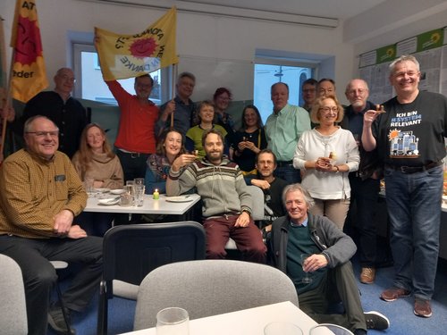„An Tagen wie diesen wünscht man sich Unendlichkeit“, das Lied der Toten Hosen war natürlich ein Muss an musikalischer Begleitung. Ca. 25 Grüne und Freund*innen der Grünen folgten der Einladung zur Feier in das geräumige Büro des Kreisverbandes der Grünen in Weilheim. Für mehr Personen wäre auch gar nicht Platz gewesen. In lockeren Vierer-Gruppen an Tischen wurden viele Gespräche geführt und Eindrücke aus Erlebnissen bei Demos ausgetauscht.