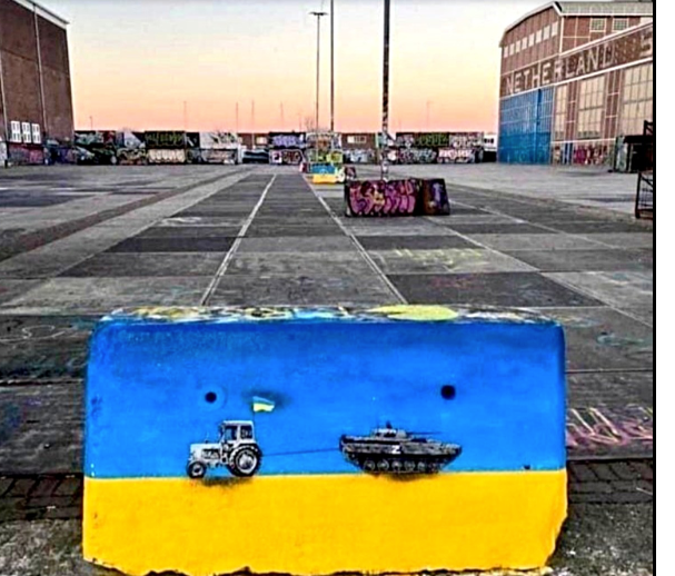 Bei den Mahnwachen in Weilheim zeigt Felix Schimke beeindruckende, ukrainische Kriegskunst.