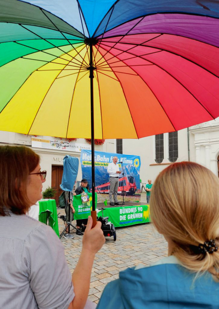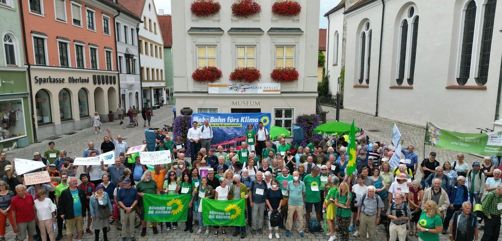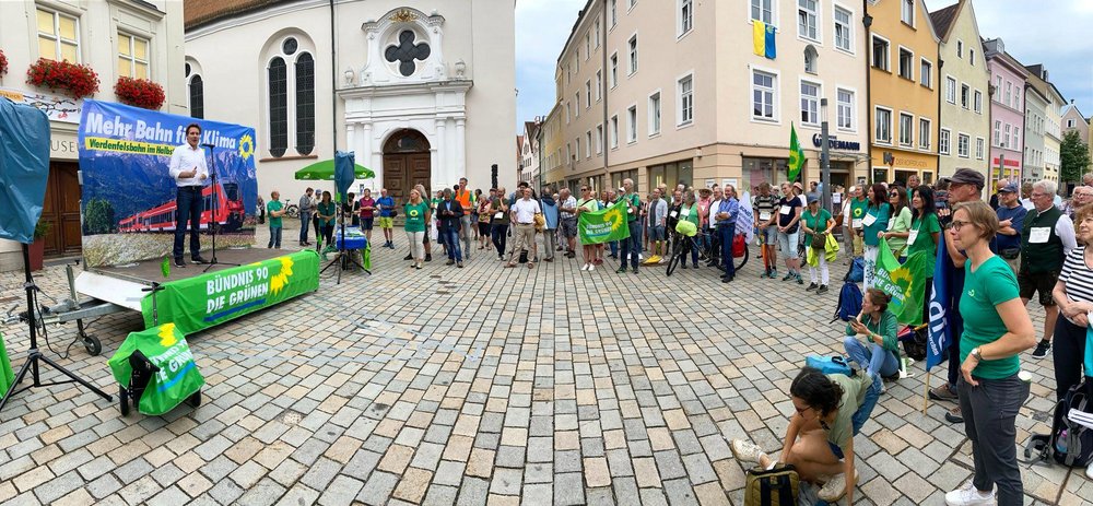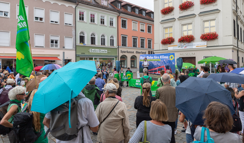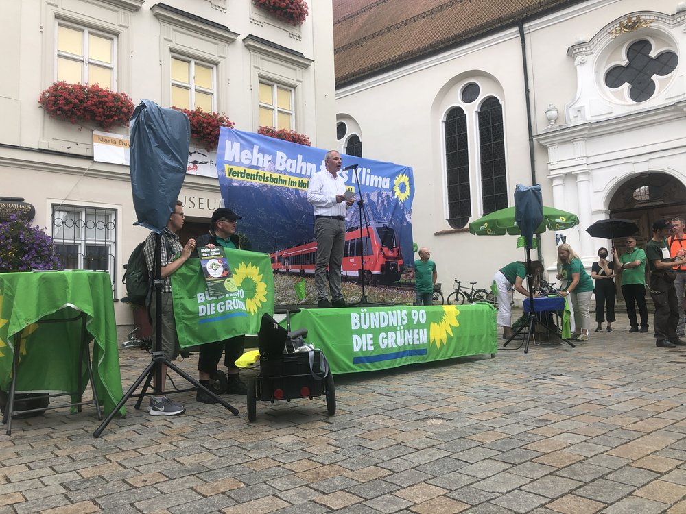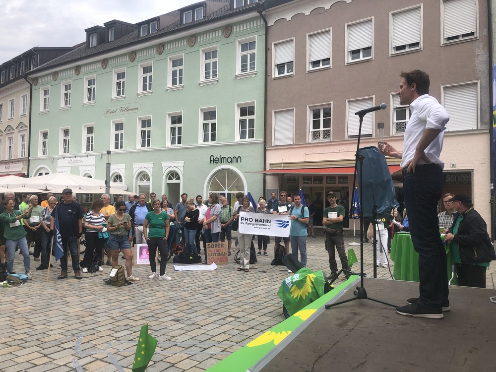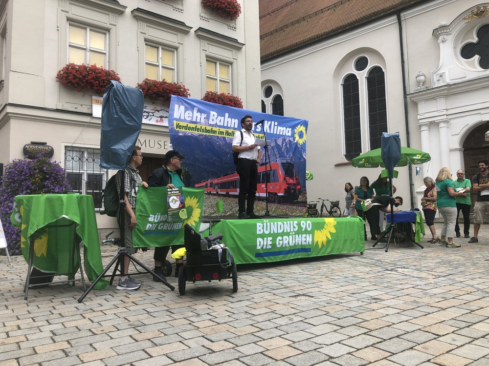 Starkes Grünes Signal für ”mehr Bahn fürs Klima” in Weilheim. Danke an das Team, die Redner*innen Norbert Moy (Pro Bahn), Harald Mansi (Bgm. Wielenbach, SPD) Jutta Steinbrecher (Grüne GAP), Ludwig Hartmann (Franktionssprecher der Grünen Landtagsfraktion), und alle, die gekommen sind!
