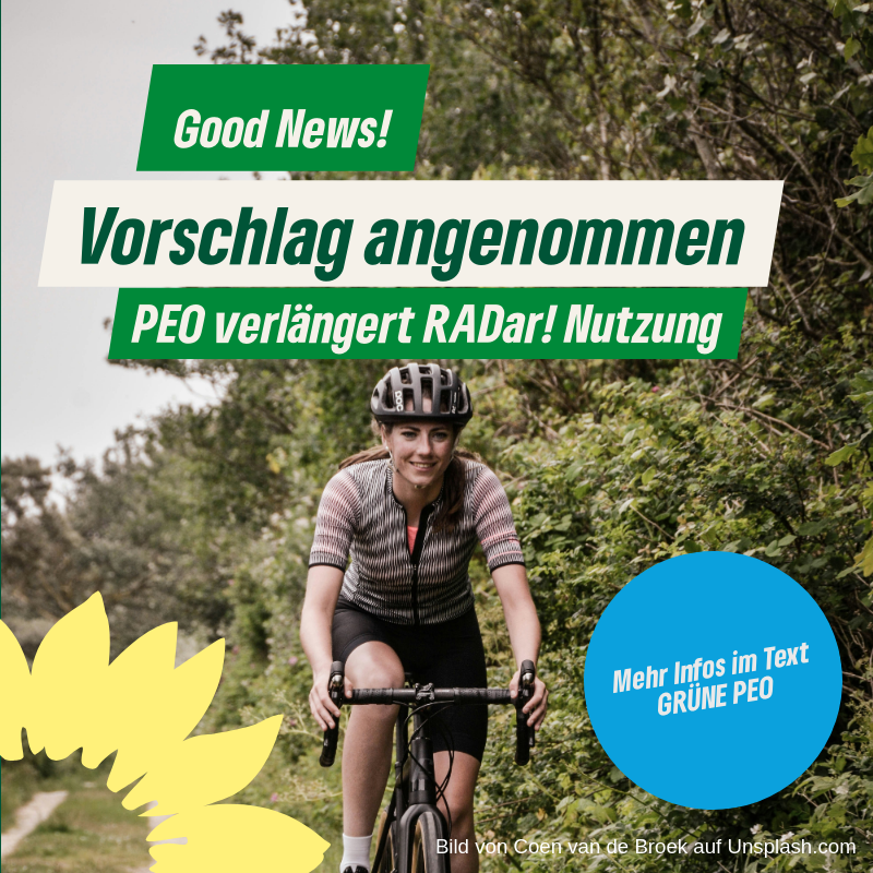 Auf kommunaler Ebene haben wir eine spannende Neuerung zu vermelden! Unser GRÜNER Ortsverband hat erfolgreich vorgeschlagen, dass unsere Gemeinde ganzjährig am RADar!-System von Stadtradeln teilnimmt.