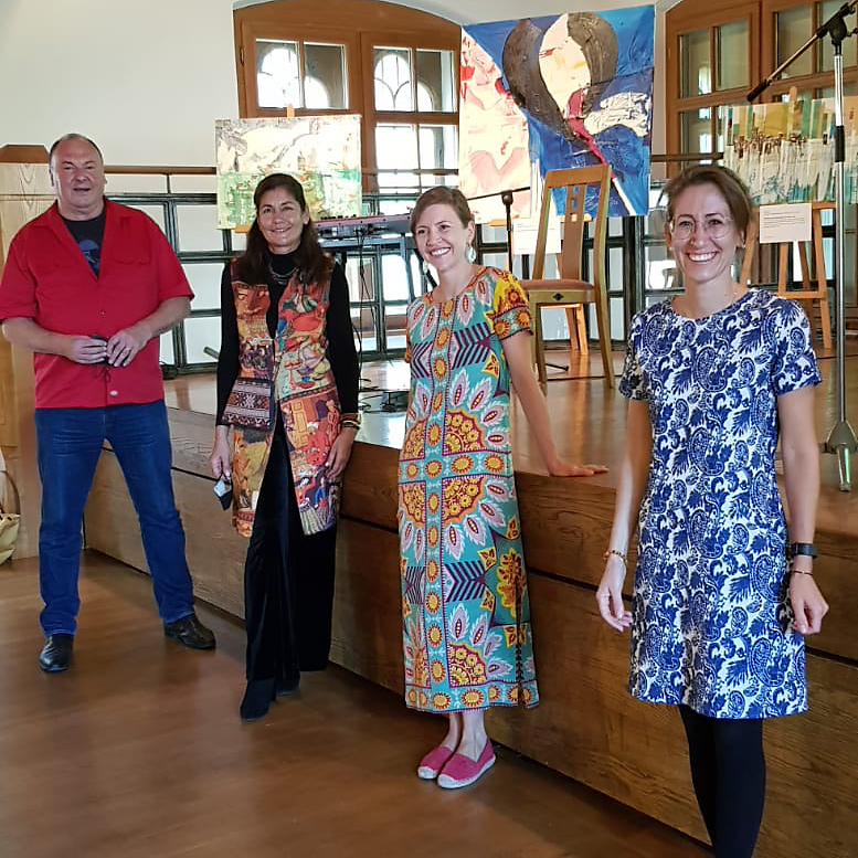 Die Veranstalterinnen Esra Böse und Susann Tabatabai-Schweizer führten durch das vielschichtig, spannende, künstlerisch gestaltete Rahmenprogramm, welches als Höhepunkt eine schöne kulturelle und musikalische Reise zwischen den Kulturen mit drei jungen Musikern beinhaltete: Drei unterschiedliche Musikrichtungen aus verschiedenen Kulturkreisen von zwei afghanischstämmigen Musikern auf einer Tambour und Flamencogitarre und einem einheimischen Künstler mit einem eigens für die Veranstaltung komponierten Klangstück auf dem E-Piano. Die berührenden Musikstücke schafften eine Sprache, die alle Gäste im Raum verband und mitfühlen ließ.