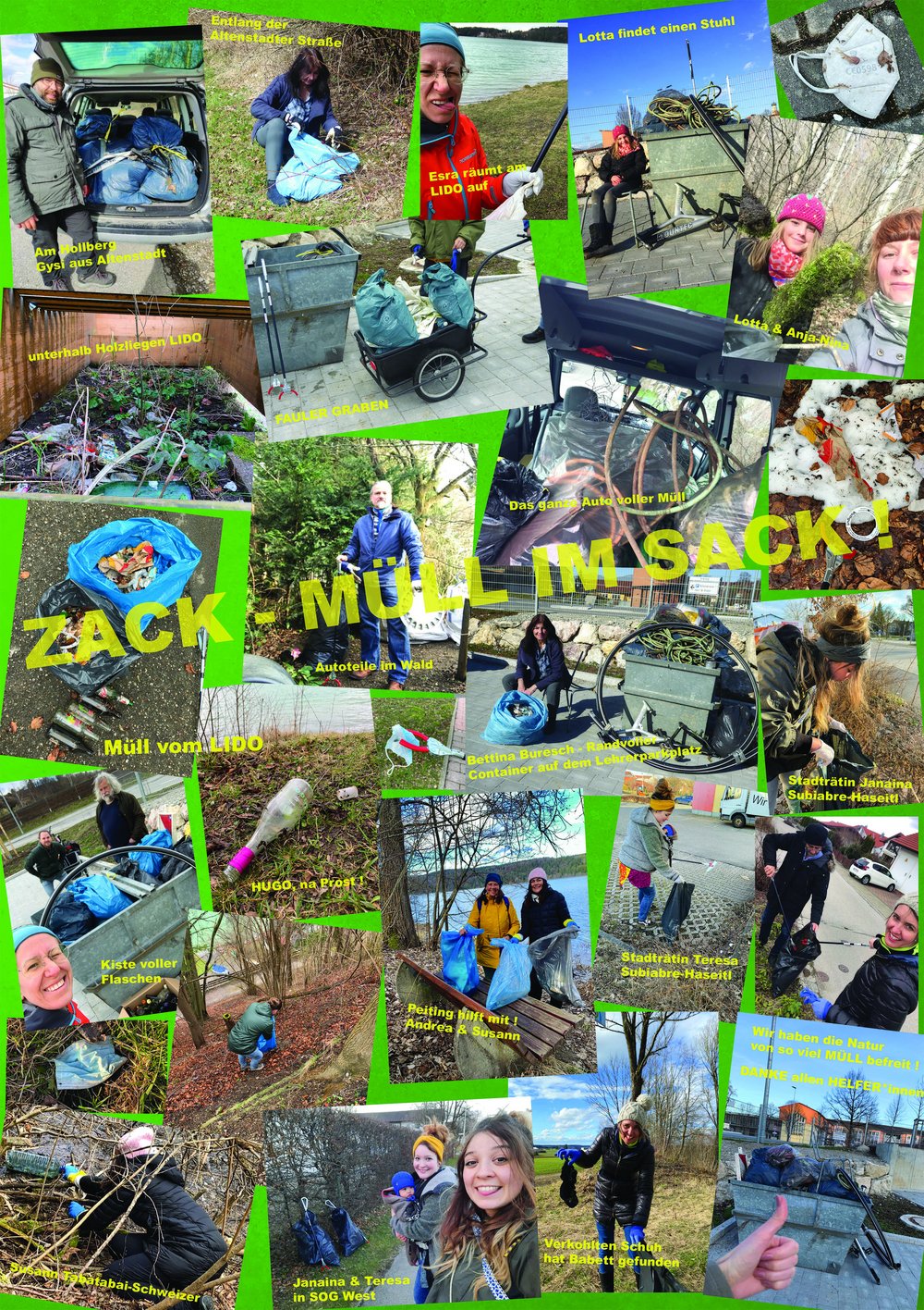 Unsere Bilanz: rund 50 Helfer*innen – auch aus Peiting und Altenstadt –, mindestens 60 Säcke Müll, dazu einige größere „Stücke“ und jede Menge Altglas, das wir direkt über die Altglascontainer dem Recycling zugeführt haben.