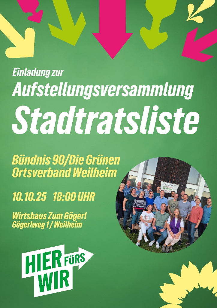 Herzliche Einladung an alle Mitglieder des OV Weilheim zur Aufstellungsversammlung der Grünen Stadtratsliste