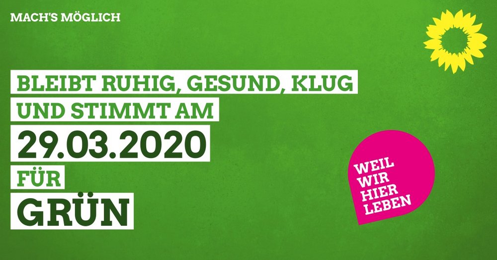 Die Welt, Bayern, den Landkreis Weilheim-Schongau wird es nach der Corona-Krise noch geben. Wie zukunftsfähig vor Ort gearbeitet wird, haben die Wähler*innen in der Hand. Daher unsere Bitte: Bleibt ruhig, bleibt gesund, bleibt klug und stimmt am 29.03.2020 für GRÜN
