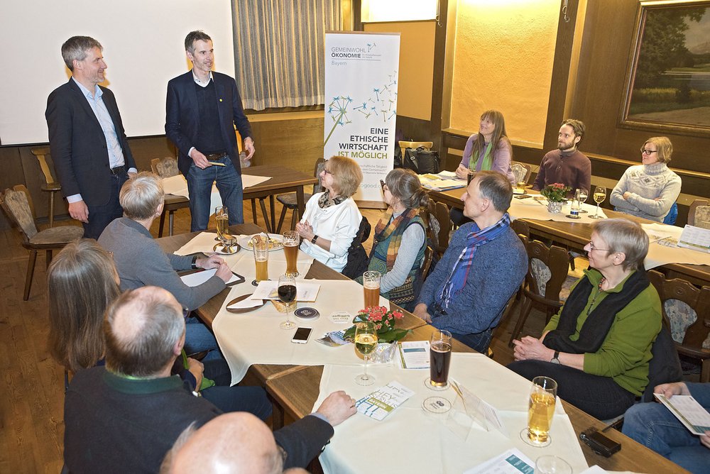 Bundestagsabgeordneter Dieter Janecek (Bündnis 90/Die Grünen) war auf Einladung von Weilheims Bürgermeisterkandidat Manuel Neulinger zu einen Gesprächsabend zum Thema „Nachhaltiges Wirtschaften – (wie) geht das?“ eingeladen worden. Dem Abend ist eine gemeinsame Betriebsbesichtigung im Biomichl in Weilheim vorangegangen, da sich der Bio-Supermarkt bei seinem Wirken an den Nachhaltigkeitszielen der Gemeinwohl-Ökonomie orientiert. Janecek setzte einen Impulsvortrag an den Beginn der Gesprächsrunde. Für ihn sei es keine Frage mehr, ob man nachhaltig wirtschaften solle, sondern es gebe eindeutig den Auftrag „wir müssen!“ Dabei dürfe nicht der Aufruf zum Verzicht im Vordergrund stehen, sondern die Chancen auf Erfolg. Die Denkweise der 1950er bis 1970er Jahre – „schneller, höher, weiter“ – müsse umgekehrt werden, zugunsten einer ökologisch-sozialen Marktwirtschaft. Aufgabe der Politik sei es, dafür die Rahmenbedingungen zu schaffen. „Wir werden das Auto nicht abschaffen können“, erklärte Janecek die Herausforderung am Beispiel der Autoindustrie, „aber wir müssen die Unsicherheit in der Branche auffangen. Veränderungen bringen auch neue Möglichkeiten mit sich. Die Verkehrsminister der letzten zehn Jahre haben uns nicht auf die Zukunft eingestellt. Wir müssen Angebote machen, am Beispiel Auto sind das alternative Mobilitätskonzepte, die den unterschiedlichen Bedürfnissen in Städten und auf dem Land gerecht werden.“ In der folgenden Gesprächsrunde beschäftigte die 40 Gäste vor allem, wie Klimaschutz auf kommunaler Ebene vorankommen kann und welche Vorgaben Kommunen dabei machen können. Es sei den Kommunen bereits jetzt möglich, bei öffentlichen Ausschreibungen ökologisch-soziale Kriterien anzusetzen, diese Möglichkeiten werden allerdings noch zu selten genutzt. Bei einem Volumen von 300 Milliarden im Beschaffungswesen der Kommunen habe man durchaus die Möglichkeit, Einfluss zu nehmen, so Janecek. Als Gebot der Stunde sieht es Janecek, „den fossilen Kapitalismus durch ökologischen Kapitalismus“ abzulösen. Dafür müsse die Politik den Rahmen schaffen. Ein Immer-weiter-So stellt auch Brigitte Gronau (lila Pulli) in Frage. Sie leitet seit 2011 den Arbeitskreis Gemeinwohl-Ökonomie der Weilheimer Agenda 21 und führte Beispiele an, wie das Wirtschaftsmodell bereits erfolgreich von einzelnen Kommunen umgesetzt wird.