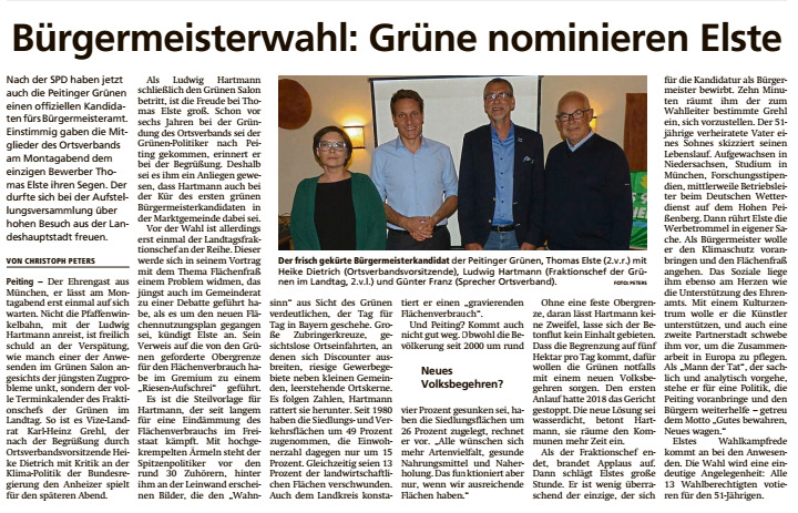 Artikel zur Wahl von Thomas Elste zu unserem Grünen Bürgermeister-Kandidaten für Peiting: