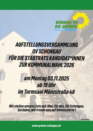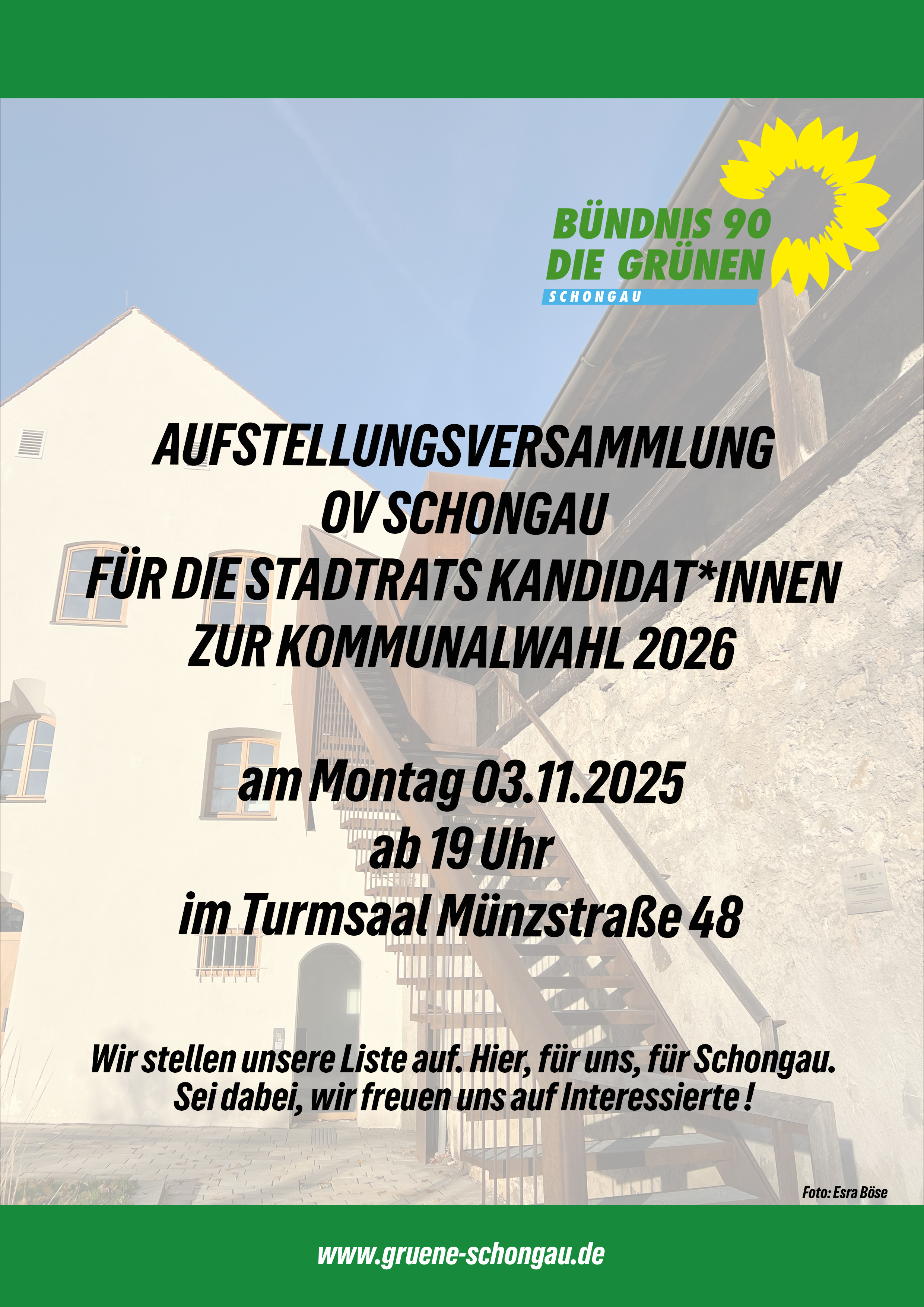Der OV Schongau lädt ein zur Aufstellungsversammlung für Kandidat*innen zur Stadtratswahl in Schongau.